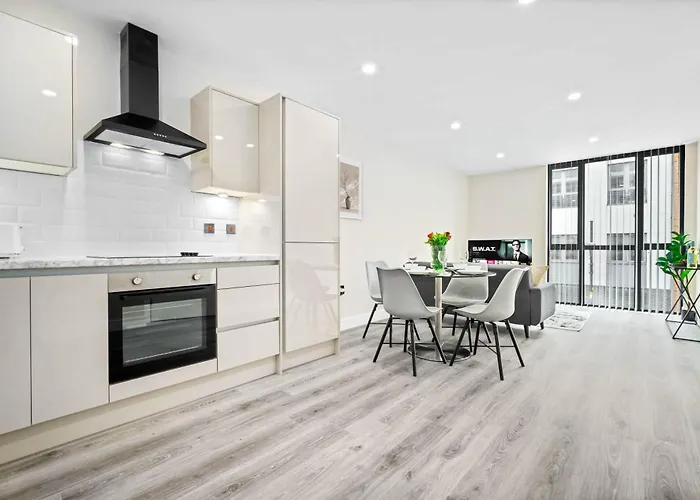 Stylish Apartment - Two Bedrooms - City Centre - Smart Tv - Wifi - Top Rated - Jq 1Ah propose des installations indépendantes pratiques, notamment une cuisine équipée avec une bouilloire électrique, un réfrigérateur et un four. L'aéroport de Birmingham est à environ 31 minutes en voiture.